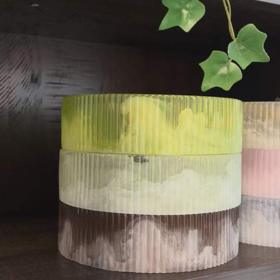 My products are poured and crafted in small batches. You may notice slight color and marble variations in your piece. This is normal and a part of the handmade process.