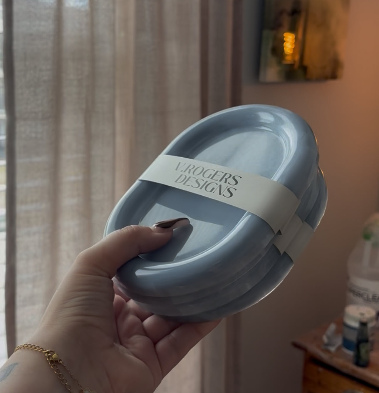 My products are poured and crafted in small batches. You may notice slight color and marble variations in your piece. This is normal and a part of the handmade process.
